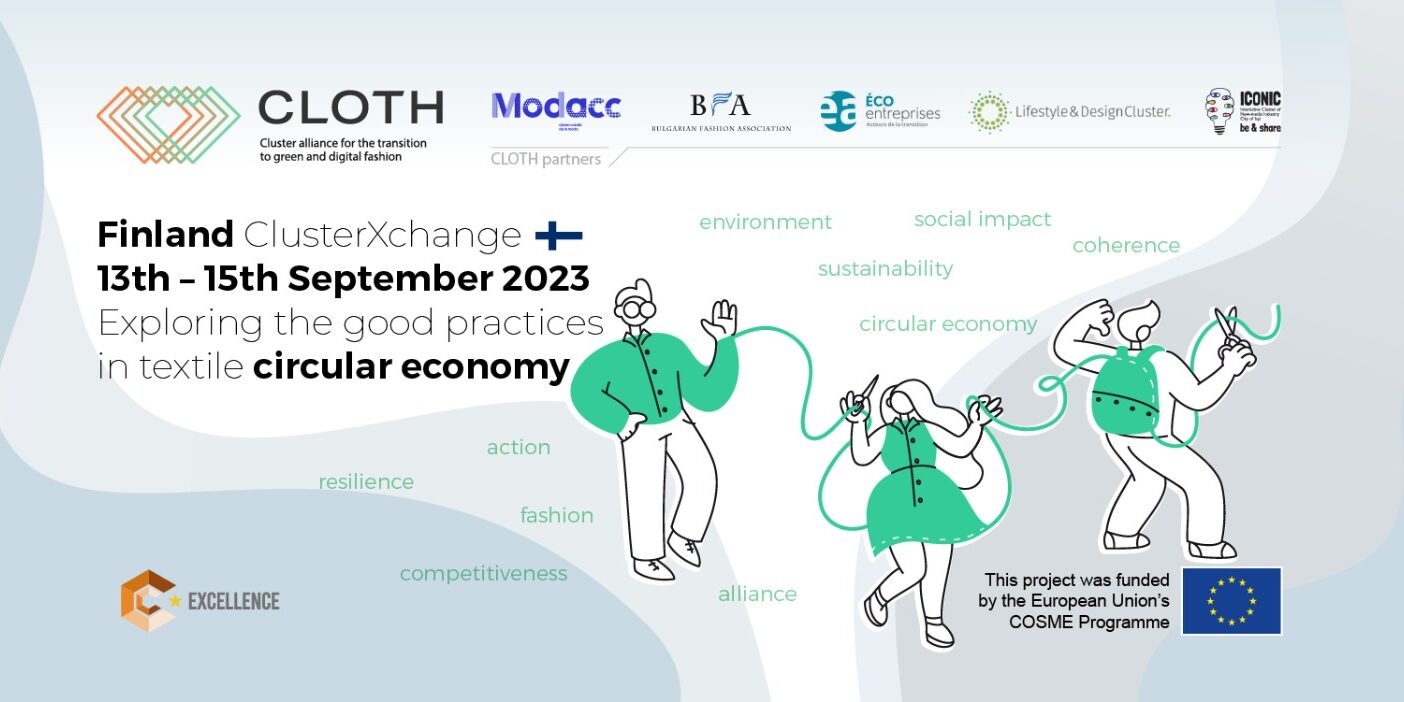 The CLOTH project is funded by the European Innovation Council and SMEs Executive Agency (EISMEA), under the powers delegated by the European Commission, COSME programme, call COS-CLUSTER-2020-3-03 / COS-CLUSTER-2020-3-03-1 (European Cluster Excellence Programme with ClusterXchange scheme connecting ecosystems and cities).For more information: https://clothproject.eu/